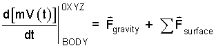 This development addresses the system model, BODY. For all events of the BODY, Newton's Second Law applies. Newton categorized forces as acting either "at a distance" or "at the surface" of the system. Forces are categorized as "BODY forces" which act at a distance and "surface forces" which act at the system surface. Our form of "f = mA" is written: