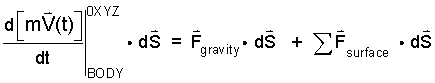 The instantaneous rate of change of momentum of a BODY in time equals the gravity force plus the sum of all surfaces forces acting. |