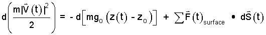 To apply (7) to a specific case, the equation must be associated with a physical situation, then integrated. Integrated, "left terms" readily become "deltas" or increments. Integration of the work terms requires special attention.