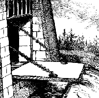 The scenario shows a typical castle drawbridge used to provide access (when down) or deny access to the entrance (when up).