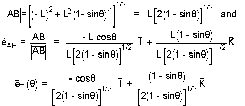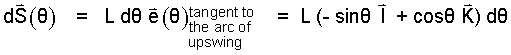 Next we need the differential displacement, dS(θ). The magnitude of a differential displacement on a circle equals Ldθ. The direction of that displacement is the unit vector perpendicular to 0A with a negative I component and a positive K component.