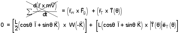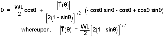 To determine the magnitude of the rope tension, |T(θ)|, we sum moments about the bridge hinge.