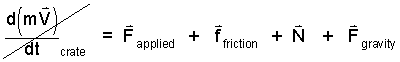 ♦ The system sketch shows the crate as a free-body. Below we write the momentum equation with the applied force written first and the others listed, going clockwise: