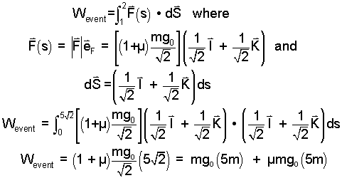 This concerns the simple task of pushing a crate slowly up a plane inclined at 45 degrees. The surface opposes the motion; it has a coefficient of friction, μ. The simple geometry permits both the energy change and work of the event to be calculated then compared. Note: Earth-and-Block together are taken as system.