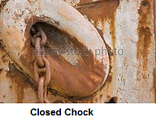 7) Winch-Hauls-Anchor Spectacle: To get under way the winch of a tanker must haul the anchor chain and massive anchor shipboard. Initially the winch purrs taking up slack as links (~8"x18") slide smoothly through the closed chock (see image). Soon the load increases and the winch starts to grind, pause, seem to stutter. Then it creaks, thumps, noises like "plucked strings" are heard. Straing full-power, the winch almost growls to create great tension in the chain. Chain movement is sporadic.