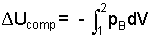 Above, we recognized that Apistondxpiston equals dVgas, the differential change of volume of the gas. With this equation it is important to realize the pressure, the last integrand, is the pressure of the gas, "at the piston face," the moving boundary of the gas. To be remindful, this pressure is notated: pB. During an actual gas compression (or expansion) pressure varies throughout the gas. Only upon the assumption "frictionless" is pressure uniform at p throughout. Practically always we set pB equal to p but for understanding, this should be a conscious act. A final consideration is if the energy of a gas must increases (positive work) as its volume decreases, a negative sign is need be placed before our integral. The energy equation for compression (or expansion) work is: