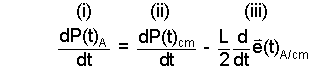 First, notice the direction "FROM" cm to "A" is in the negative, eA/cm(t) direction. Thus the minus sign. Now we combine Eqn-3L and Eqn-3R, then take the derivative thereof, Eqn-14.