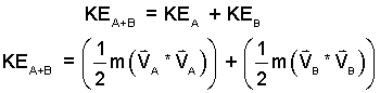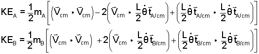 Now express the velocities, VA and VB as the the velocity of the center of mass plus a rotational component relative to the center of mass. We show the steps for particle "A."