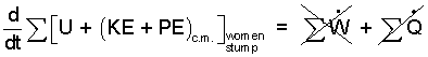 Multiplying equation (1) by "dt" our rate-form energy equation becomes a differential form. In this new equation the energy terms divides into part for the stump and a part for the women, collectively.
