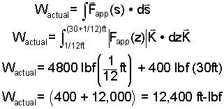 Calculate the weight of a sheet pile. When the pile is lifted the elevation of its top is 30 feet one inch and the lift force is 400 lbf. Thus: