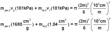 Calculate the amount of liquid when the port pops open. In the second state, the original mass will be part liquid with the specific volume of state (2f), and part vapor with the specific volume, of