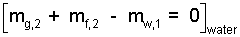 To be careful, we will treat the water and liver separately. We write a mass equation for the water which expresses that liquid and gas exist in the final state.