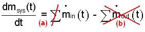 Mass Equation: The mass equation is written with two reductions for the "system/event" indicated. The system has only one place of mass entrance (a) and no places of mass exit (b).