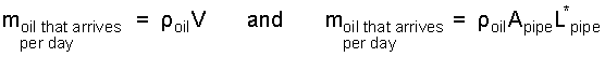 Put in a different way, right now, at the time t = 0+, way upstream at some unknown distance, L*, toward Prudehome, a drop of oil is moving toward us with constant speed. That drop will pass here in precisely 24 hours. Also, at that time, the "entire mass" of oil contained by the pipe between here and the "drop" will have passed this location. We know the volume of that "entire mass" and we know diameter of its pipe. We use these facts to calculate the distance or length of the system of oil, L*.