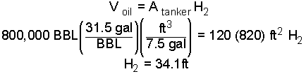 The velocity of oil delivered in the pipe, Vin,avg is the answer we seek. As the tanker is filled, the depth of oil, H( t ), increases from zero to a second height. A simple calculation gives the oil depth after 800,000 barrels are loaded.