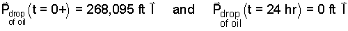 For this differential equation we have that the initial depth of oil in the tank, D( t = 0+) equals zero and the depth 24 hours later is D( t = 24 hr) is 34.1 feet. So we separate variables and integrate: