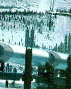♦ A second way of determining the oil flow velocity is to visualize the filling of an empty oil barge. The image, barge Douglas M., is empty and has the hold dimensions, 820 by 120 by 40 feet.