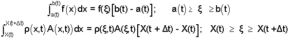 The function, f(x), varies over the limits, a(t) ≤ x ≤ b(t). The mean value of f(x) is f(ζ). Applied to our integral we obtain: