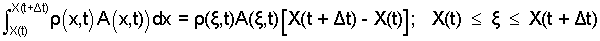 For our simple case, ρ and A being constant, we could just remove them from the integral and integrate it. But for the sake of learning, we pretend they are not constants. We rewrite the integral (with those terms as variables) then take the derivative of the system mass with respect to time.