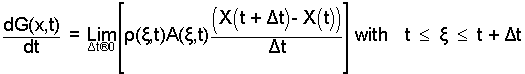 In the above equation, the term right of equality is the derivative with respect to time of an integral that has a function of time as its upper limit. We will use the classical approach to determine that derivative. Given a function G(x,t), to determine dG(x,t)/dt , form the difference, G(x, t + Δt) - G(x,t), divide the difference by Δt, then take the limit as Δt becomes zero. Our G(x, t) and the steps are: