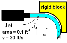 Calculate the force exerted on the block by the jet.