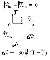 The velocity diagram (right) is constructed by drawing Vin and Vout then drawing a vector from Vin to Vout; that vector is ΔV. This diagram result is entered into the momentum equation: