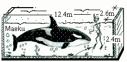 A killer whale captured off Japan is to be shipped air-freight to Miami in a container. To travel, Maeku will float in water, sedated, and harnessed to the sides of his aquarium. During the 48 hour flight,dry ice (solid carbon dioxide), will be dumped steadily into the aquarium to maintain its water at 5°C.