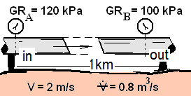 The sketch shows a section of a pipeline through which oil flows steadily left to right. Two sections, "A" and "B", are indicated as vertical planes cutting through the pipe. Take the system to be the oil contained within the pipe between the "in" and "out" planes. Masses of oil flow across these planes.